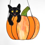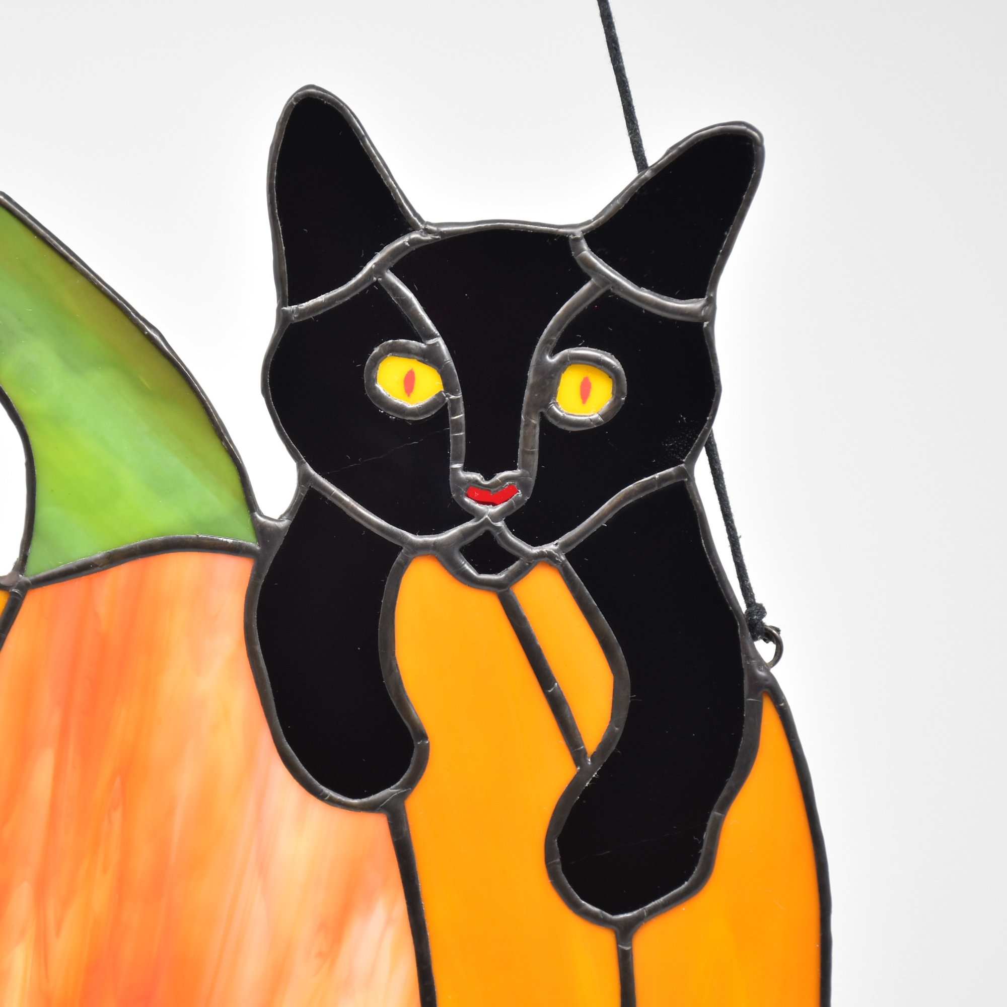 Pumpkin and Kitten Hand-crafted Stained Glass Art